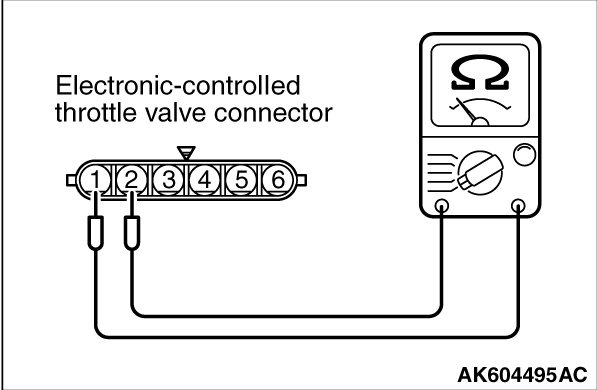 If the measured resistance deviates from the standard value, fully open the throttle valve with your finger more than five times, then check the result again. If the throttle actuator control motor is not used for an extended period of time, the resistance may be increased as a result of internal forming of oxide film. Therefore, it means that the oxide film can be removed through a self cleaning capability of the throttle actuator control motor, if forcibly moved.