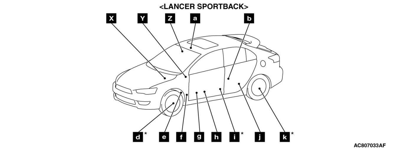 The * symbols indicate equipped at the right side.