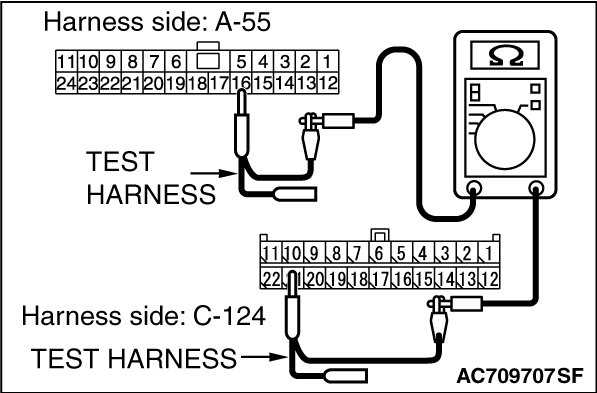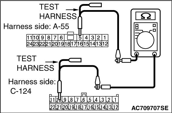 STEP 2. Check the wiring harness between joint connector (CAN3) C-124 and joint connector (CAN4) A-55 for open circuit.