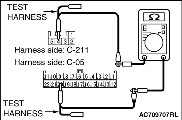 (1)Disconnect joint connector (CAN2) C-05 and steering wheel sensor connector C-211, and check the wiring harness.