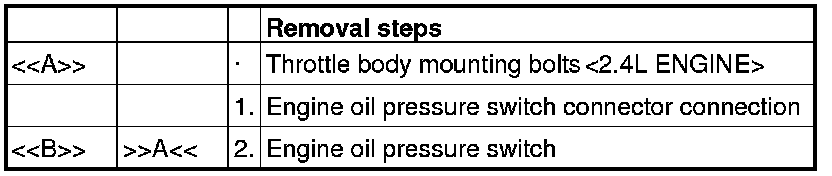 Remove the throttle body mounting bolts and put the throttle body aside so as not to interfere the engine oil pressure switch connector disconnection.