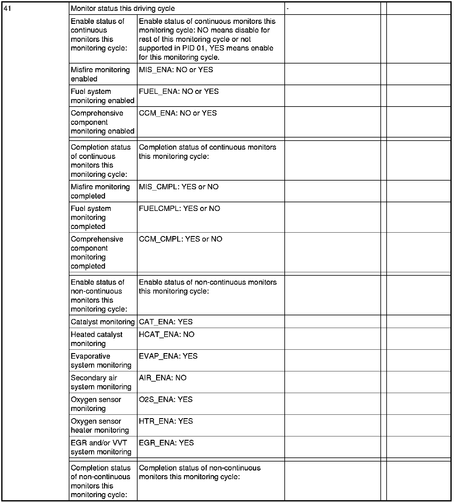 General Scan Tool (GST) Mode 01 Reference Table