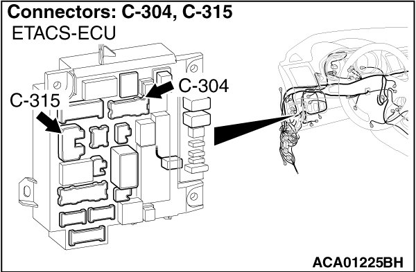 (1)Disconnect the connector C-304, C-315 and measure at the ETACS-ECU side.
