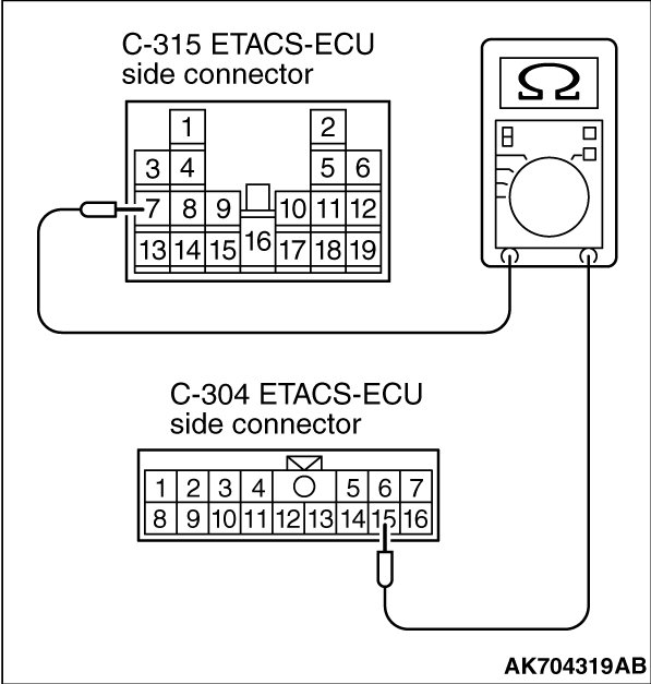 STEP 8. Check the continuity at ETACS-ECU side connector C-304 and C-315.