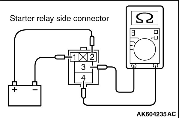 (2)Check for continuity between the starter relay terminals No. 1 and No. 2.