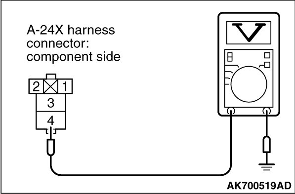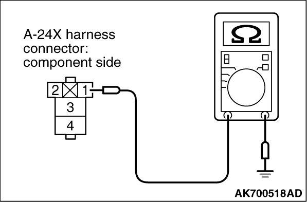 (1)Disconnect the connector A-24X and measure at the harness side.