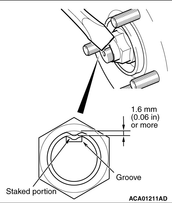 Stake the nut until the centre in the staked portion reaches the shown dimension.