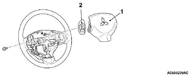 - Before removing the air bag module, refer to, Service Precautions ( Service Precautions) and Driver's Air Bag Module and Clock Spring ( Removal and Installation (Except Ralliart) [Except RALLIART] or Removal and Installation (Ralliart) [RALLIART]).