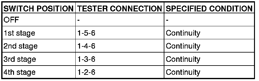 This figure illustrates a complex switch. The continuity between terminals at each position is as indicated in the table below.