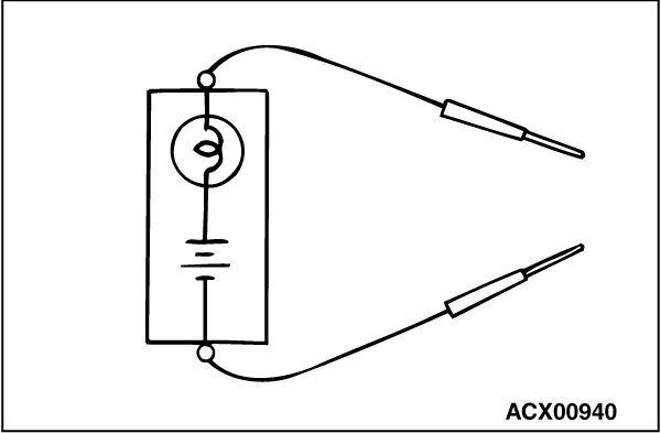 A self-powered test light consists of a bulb, battery and lead wires connected in series.