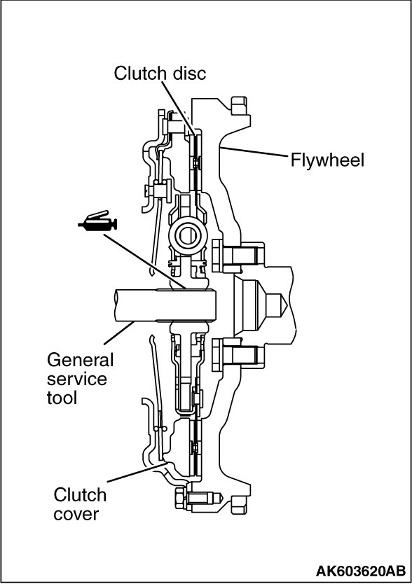 2. Use the general service tool to position the clutch disc on the flywheel.