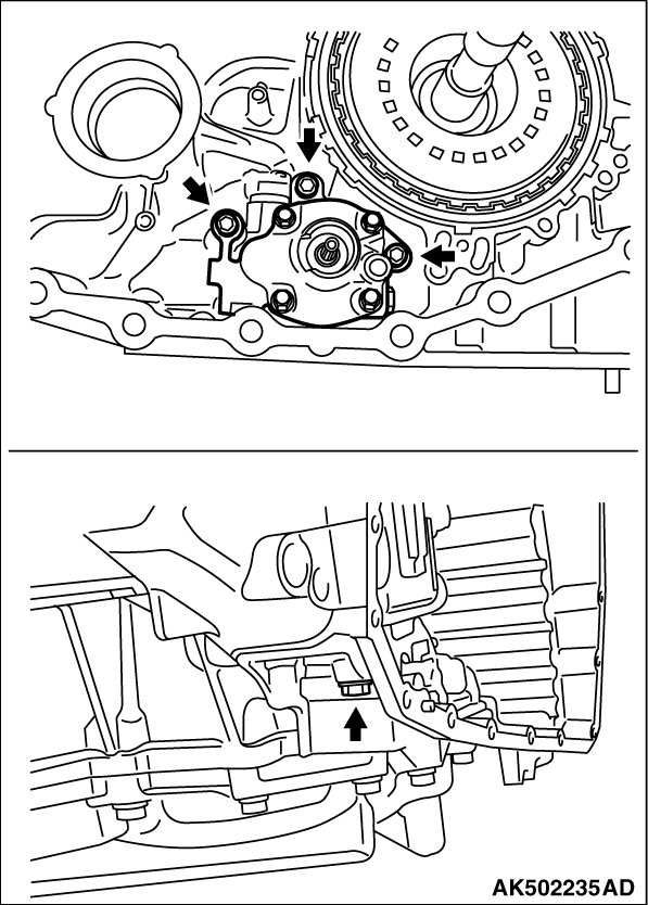 51. Remove the oil pump from the transaxle case. (One fastening bolt is installed at the backside from the transaxle case side.)