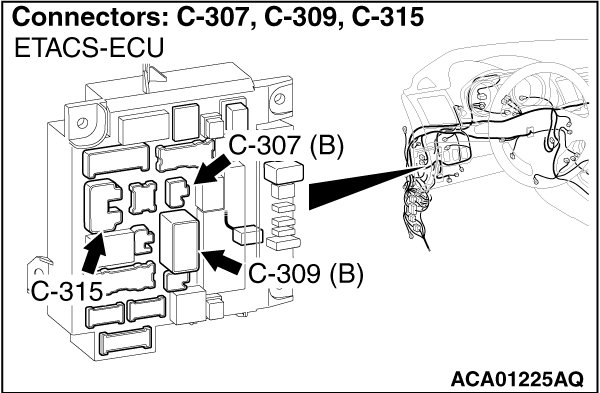 STEP 7. Check ETACS-ECU connector C-307 for loose, corroded or damaged terminals, or terminals pushed back in the connector.