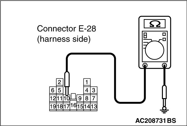 (1)Disconnect power window main switch connector E-28 and measure the resistance available at the wiring harness side of the connector.