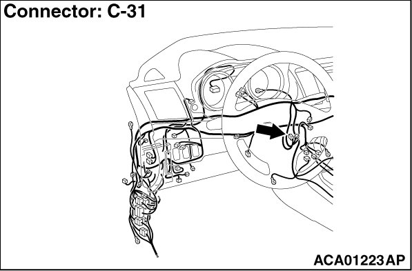 STEP 2. Check KOS-ECU connector C-31 and lock/unlock switch (front door: RH) connector E-06 for loose, corroded or damaged terminals, or terminals pushed back in the connector.
