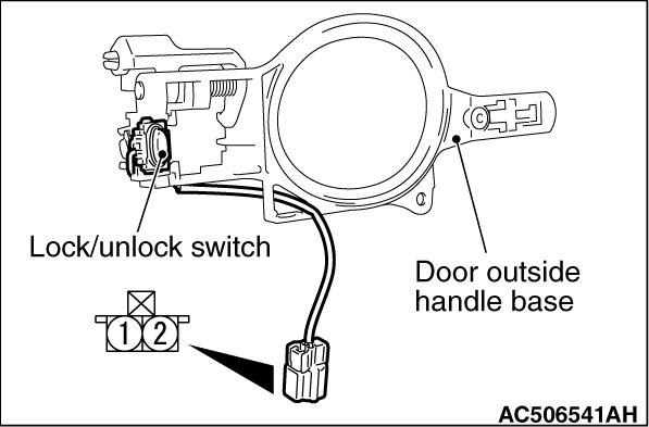 (2)Check continuity when the lock/unlock switch (front door: RH) is operated to "ON" or "OFF"