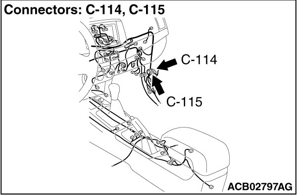 Also check intermediate connectors C-114, C-115 for loose, corroded, or damaged terminals, or terminals pushed back in the connector. If intermediate connectors C-114, C-115 is damaged, repair or replace the damaged component(s) as described in Harness Connector Inspection Harness Connector Inspection.