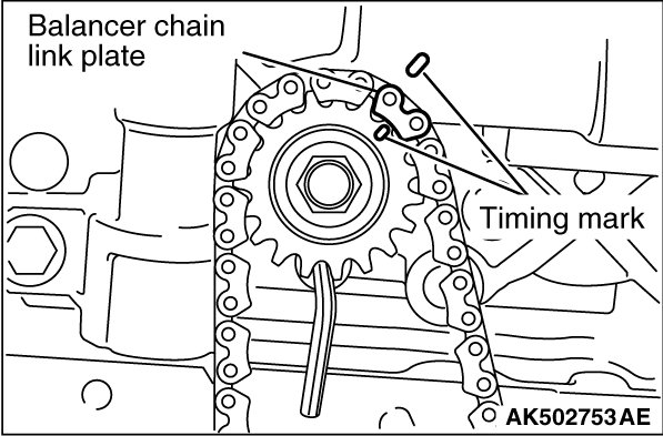 4. Loop the balancer chain, aligning its link plate with the timing mark.