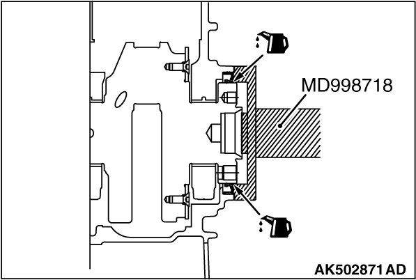 After applying a small amount of engine oil to the oil seal lip, use special tool MD998718 to press fit the oil seal.