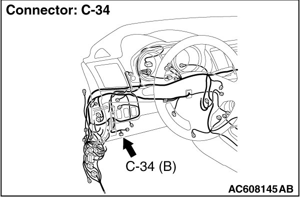 STEP 1. Check data link connector C-34 and ETACS-ECU connector C-301 for loose, corroded or damaged terminals, or terminals pushed back in the connector.
