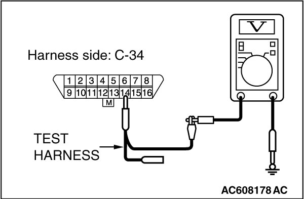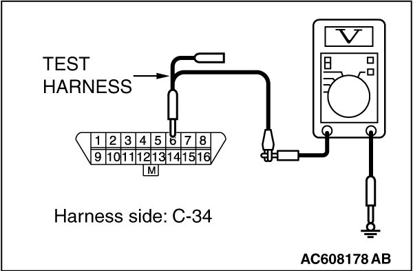 STEP 4. Check the wiring harness between data link connector C-34 and ETACS-ECU connector C-301 for a short to the power supply. Measure the voltage at data link connector C-34.