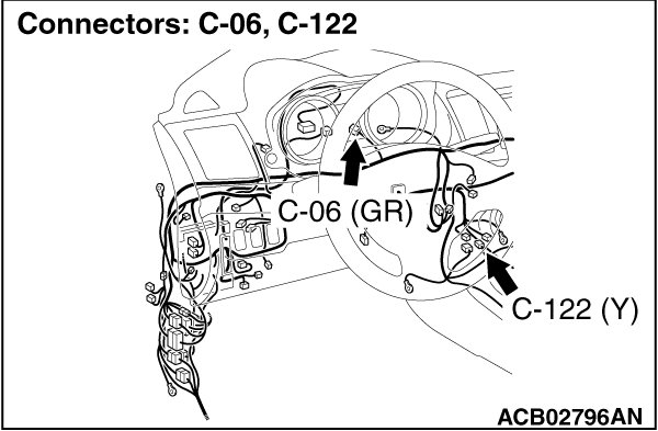 STEP 1. Check joint connector (CAN1) C-06 and SRS-ECU connector C-122 for loose, corroded or damaged terminals, or terminals pushed back in the connector.