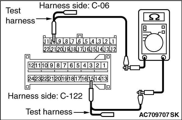 STEP 2. Check the wiring harness between joint connector (CAN1) C-06 and SRS-ECU connector C-122 for open circuit.