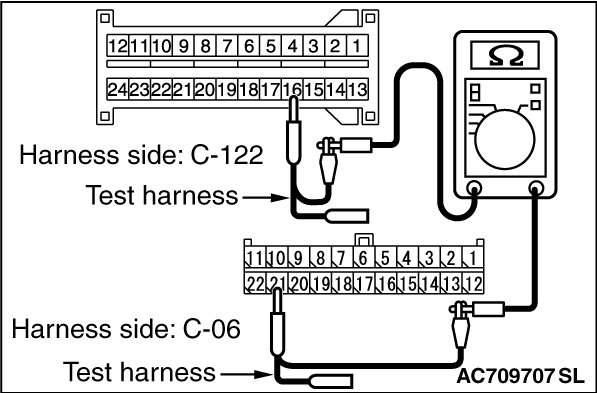 (1)Disconnect joint connector (CAN1) C-06 and SRS-ECU connector C-122, and check the wiring harness.