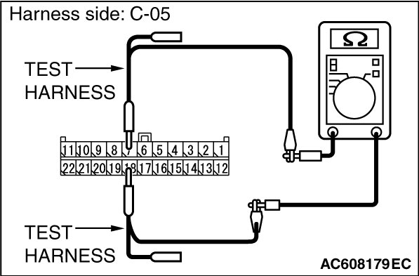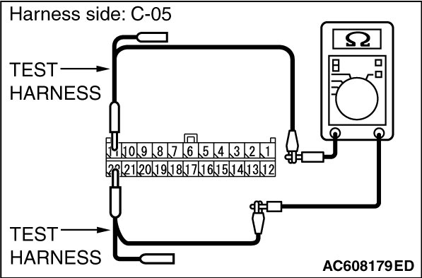 STEP 18. Check the wiring harness between joint connector (CAN2) C-05 and ETACS-ECU connector C-301 for line-to-line short. Measure the resistance at joint connector (CAN2) C-05.