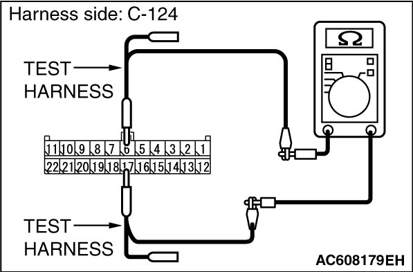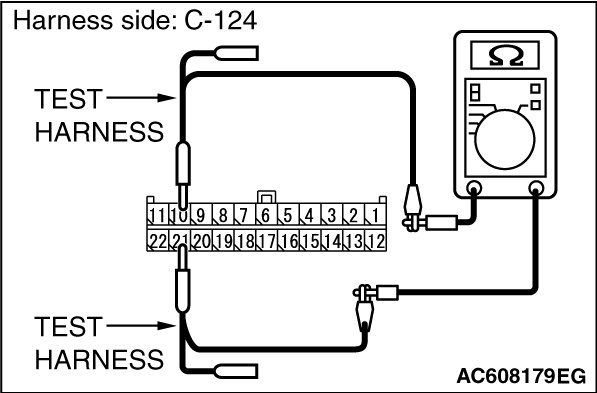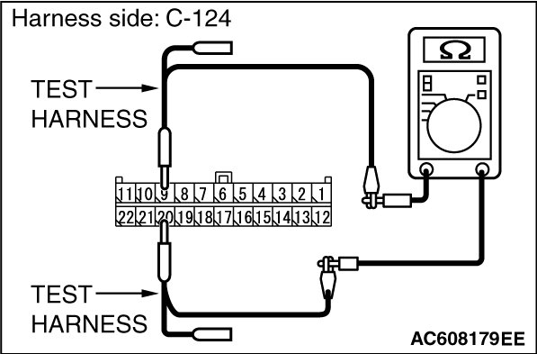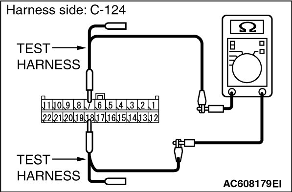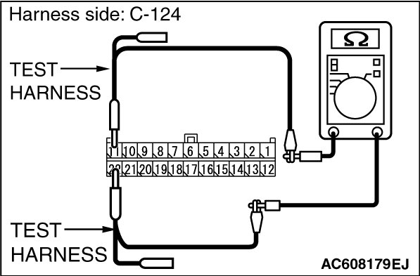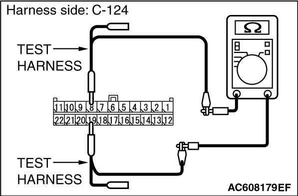 STEP9. Check the wiring harness between joint connector (CAN3) C-124 and ECM connector B-109 [except RALLIART] for line-to-line short. Measure the resistance at joint connector (CAN3) C-124.