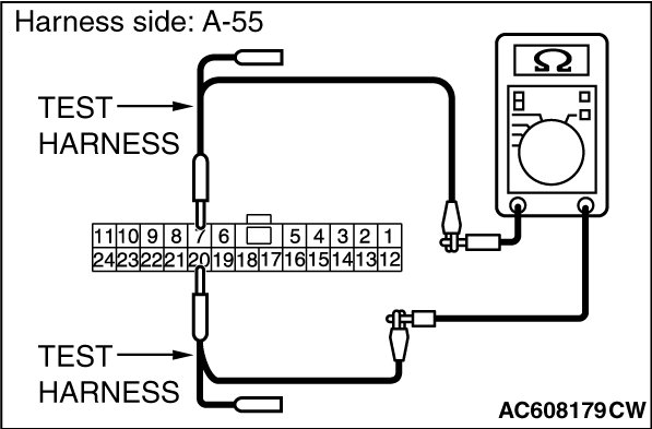 STEP 12. Check the wiring harness between joint connector (CAN4) A-55 and ECM connector B-109 [RALLIART] for line-to-line short. Measure the resistance at joint connector (CAN4) A-55.