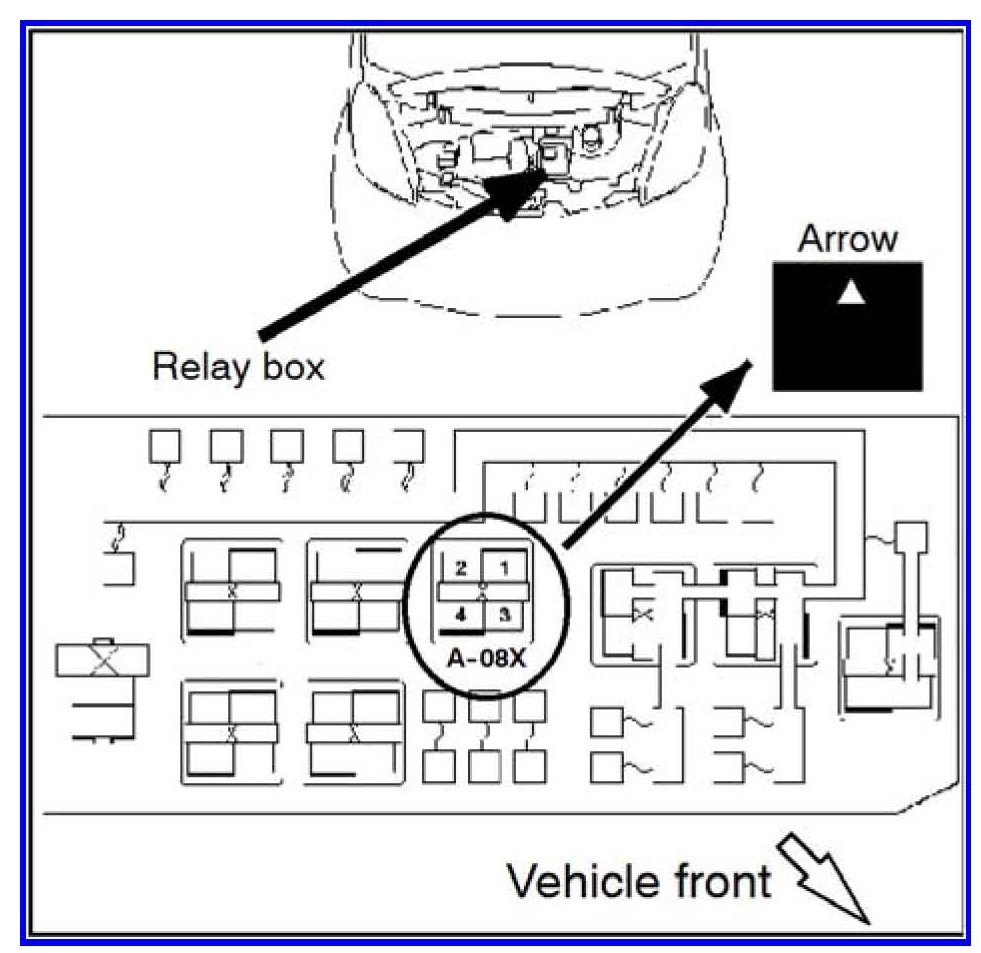 !!IMPORTANT!! Take note of the arrow (A) on top of the relay. Install the new relay with the arrow pointing in the same direction.