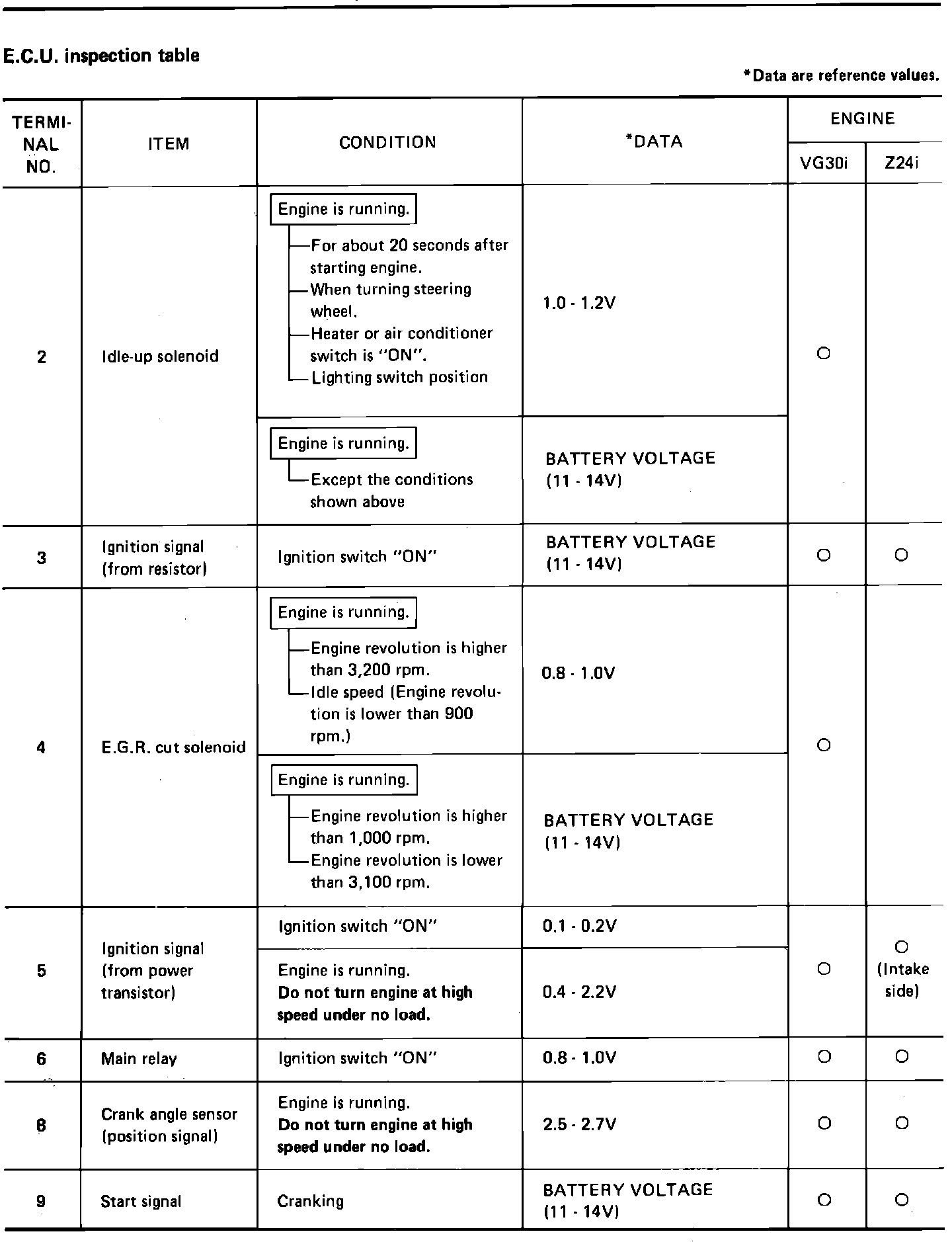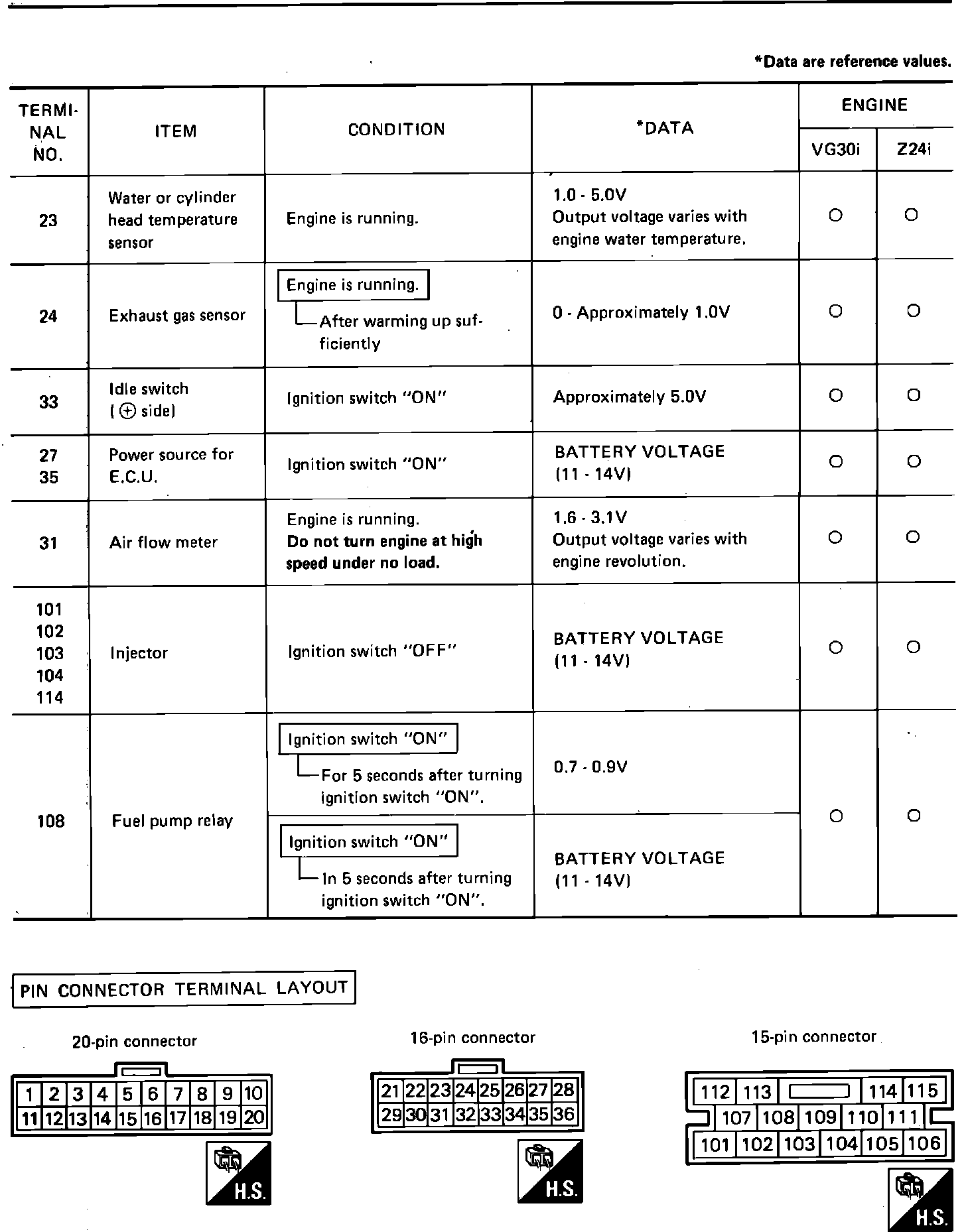 Fig. 307d Input/Output signal inspection chart.: