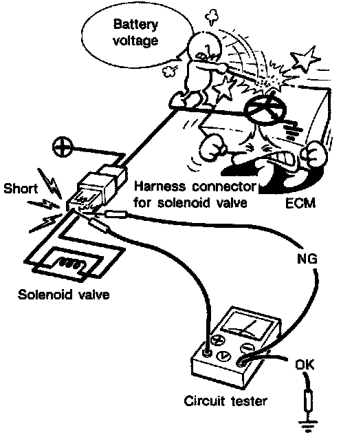 - When measuring ECM signals with a circuit tester, never allow the two tester probes to contact. Accidental contact of probes will cause a short circuit and damage the ECM power transistor.