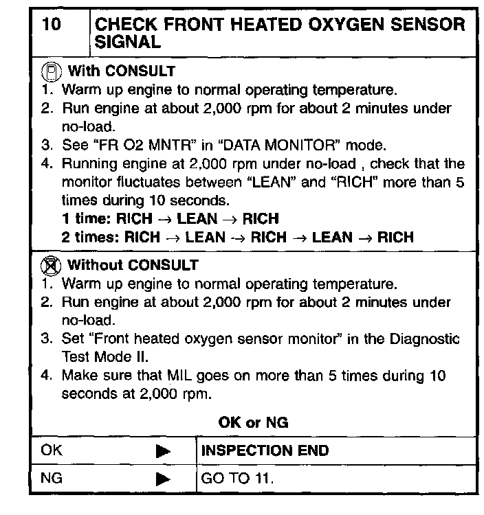 10 CHECK FRONT HEATED OXYGEN SENSOR SIGNAL: