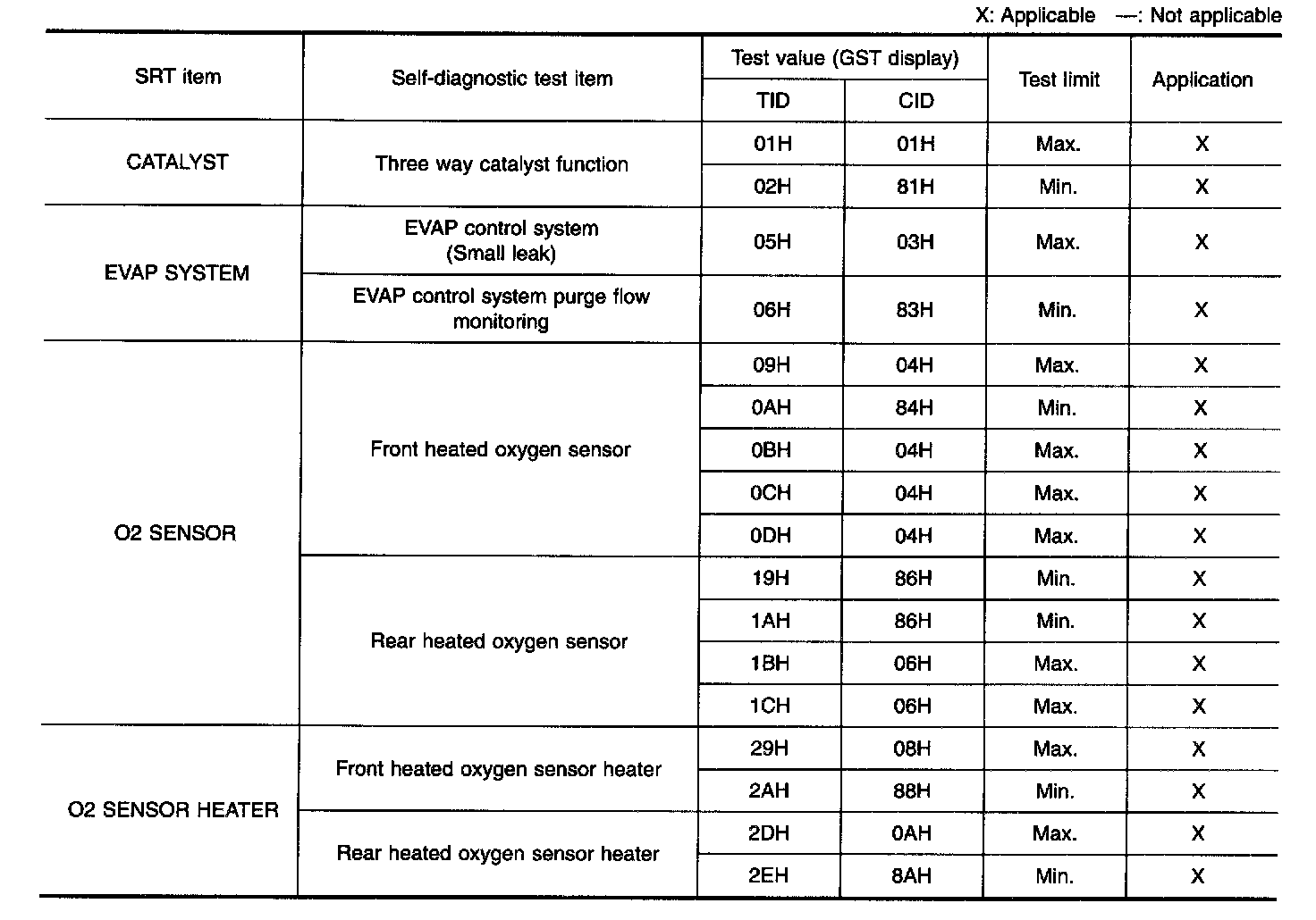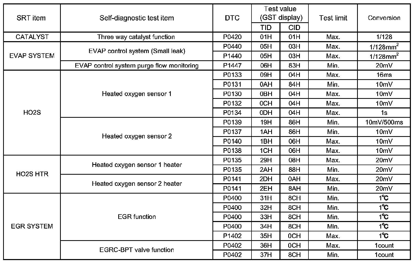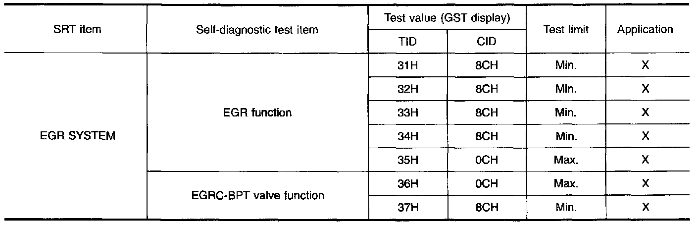 The test value is a parameter used to determine whether system/circuit diagnostic test is "OK" or "NG" while being monitored by the ECM during self-diagnosis. The test limit is a reference value which is specified as the maximum or minimum value and is compared with the test value being monitored.