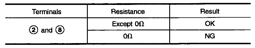 2. Check power transistor resistance between terminals [2] and [8]