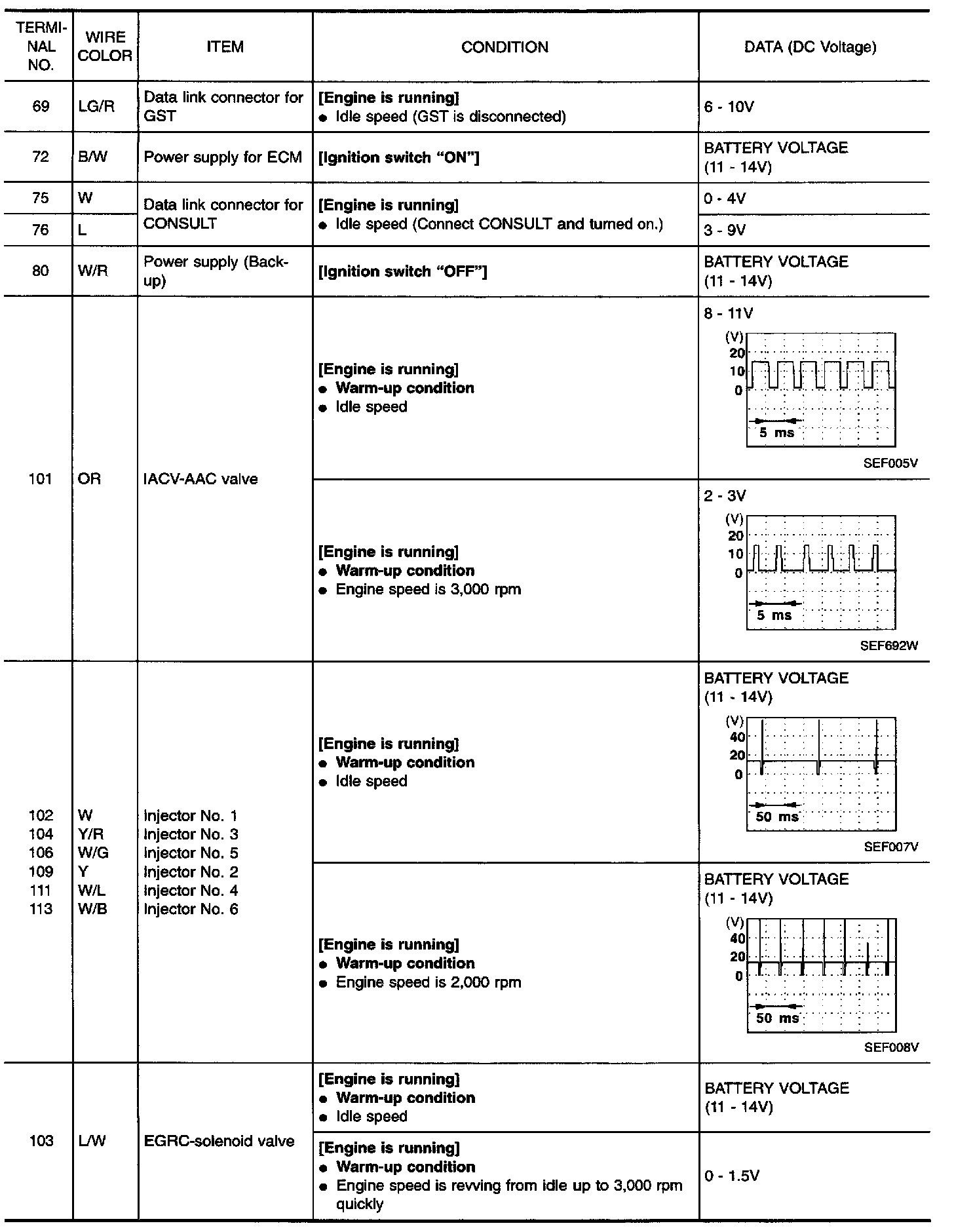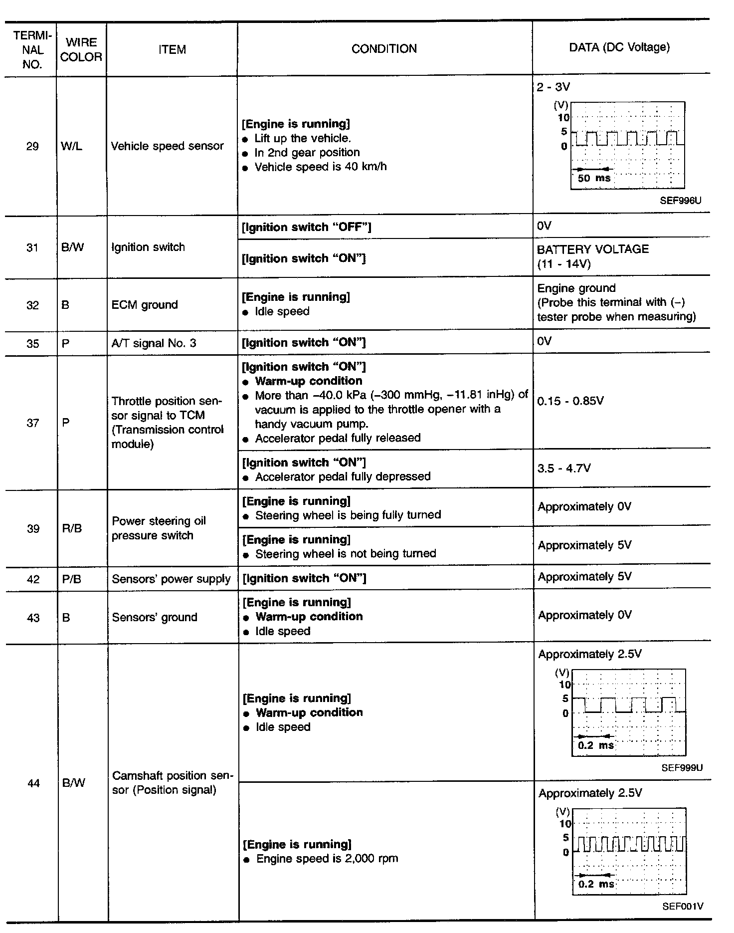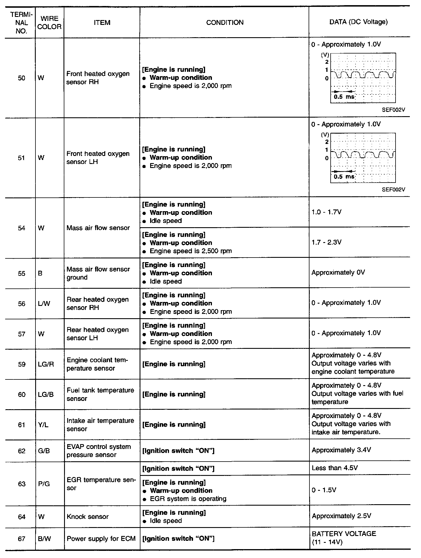 Specification data are reference values and are measured between each terminal and 32 (ECM ground).