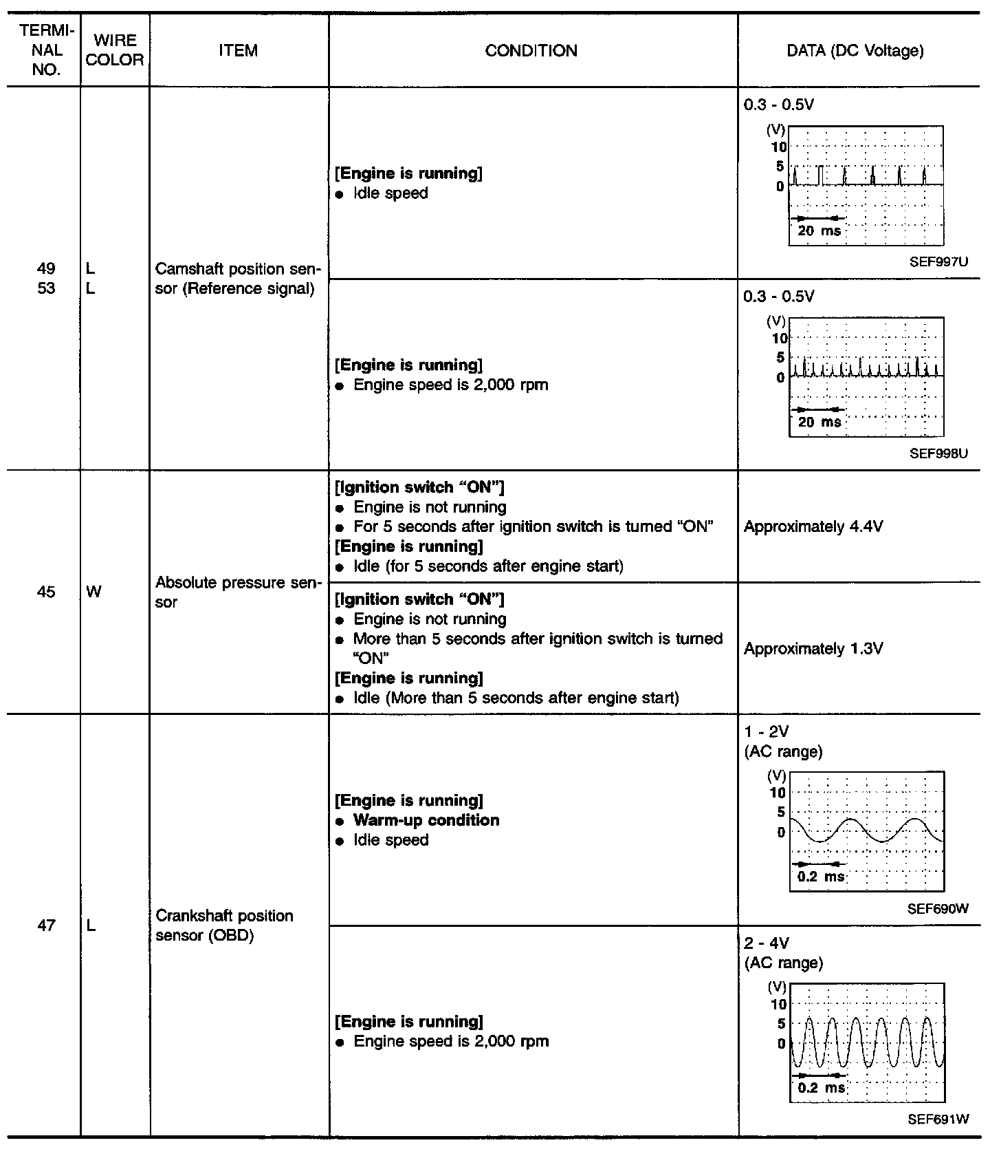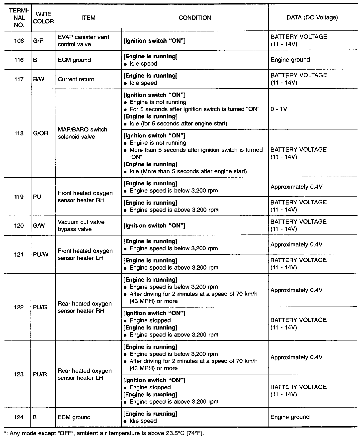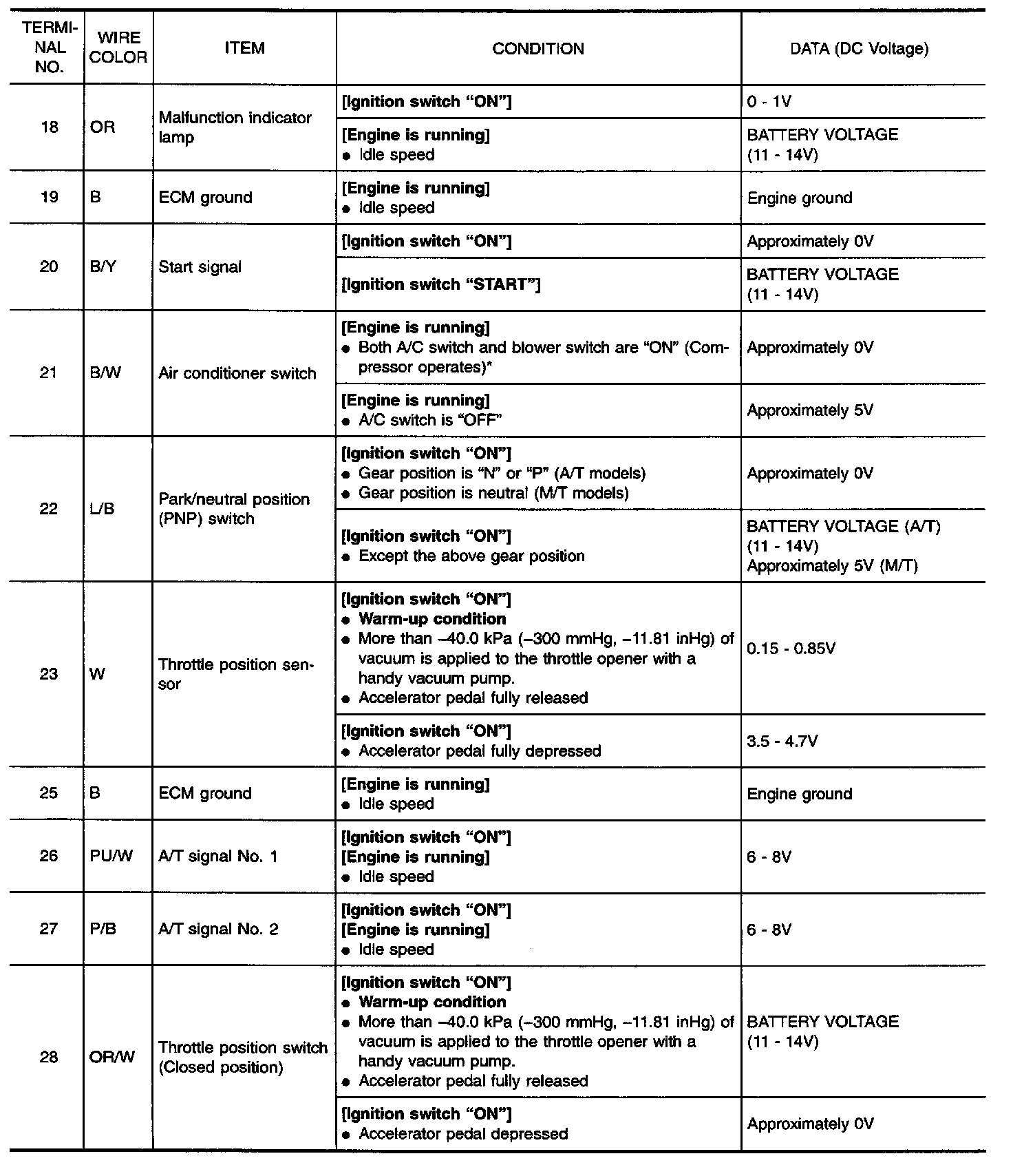 Specification data are reference values and are measured between each terminal and 32 (ECM ground).