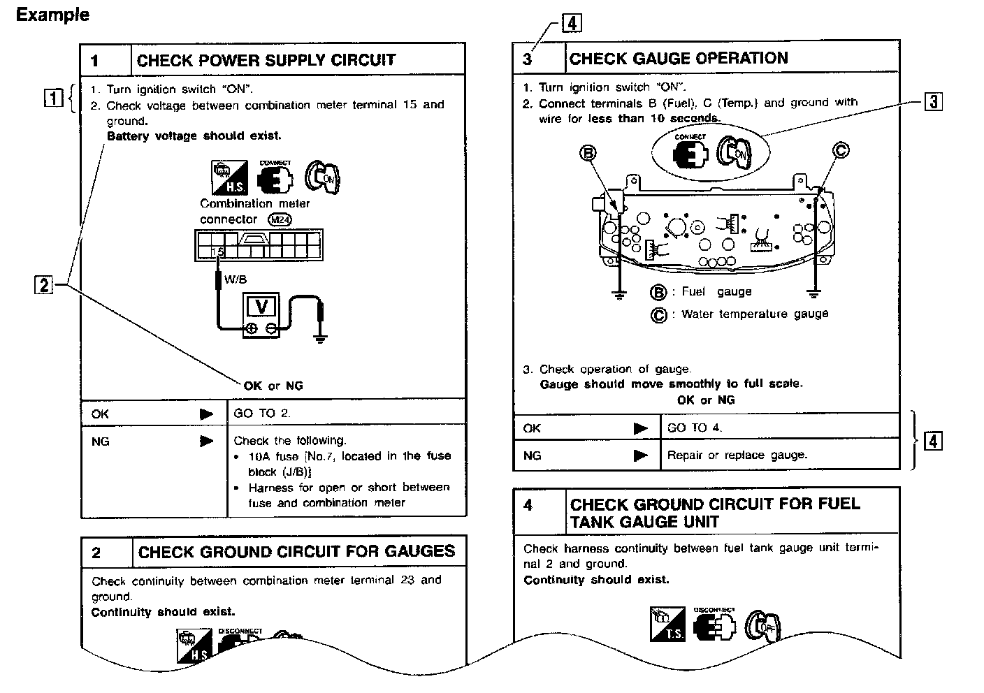 Symbols included in illustrations refer to measurements or procedures. Before diagnosing a problem, familiarize yourself with each symbol. Refer to "CONNECTOR SYMBOLS" and "key to Symbols Signifying Measurements or Procedures".