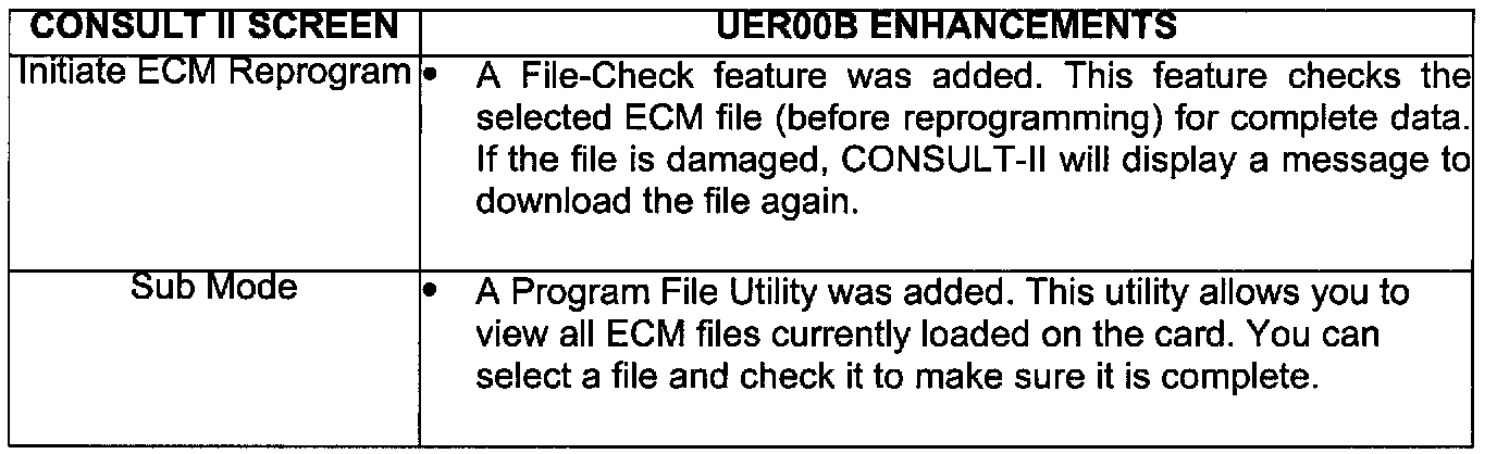 CONSULT-II ECM REPROGRAMMING SOFTWARE UPDATE (UER00B)