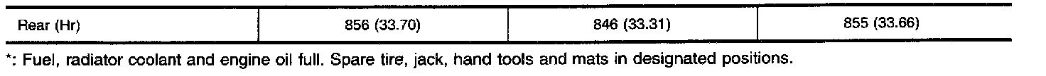 *: Fuel, radiator coolant and engine oil full. Spare tire, jack, hand tools and mats in designated positions.