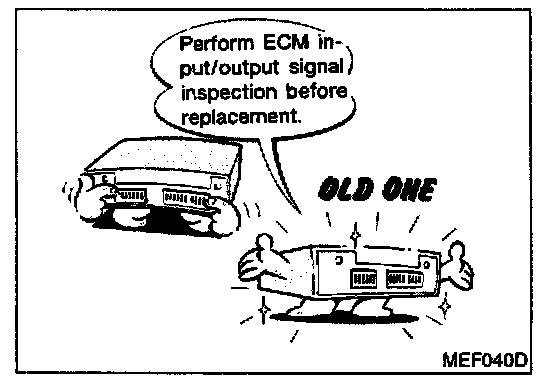 - Before replacing ECM, perform "ECM Terminals and Reference Value" inspection and make sure ECM functions properly.