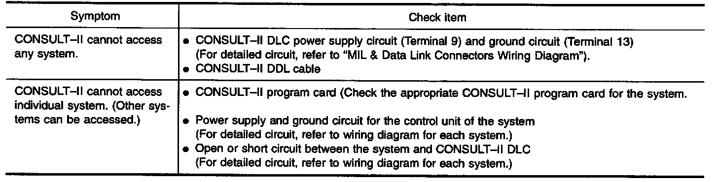 If the CONSULT cannot diagnose the system properly, check the following items.