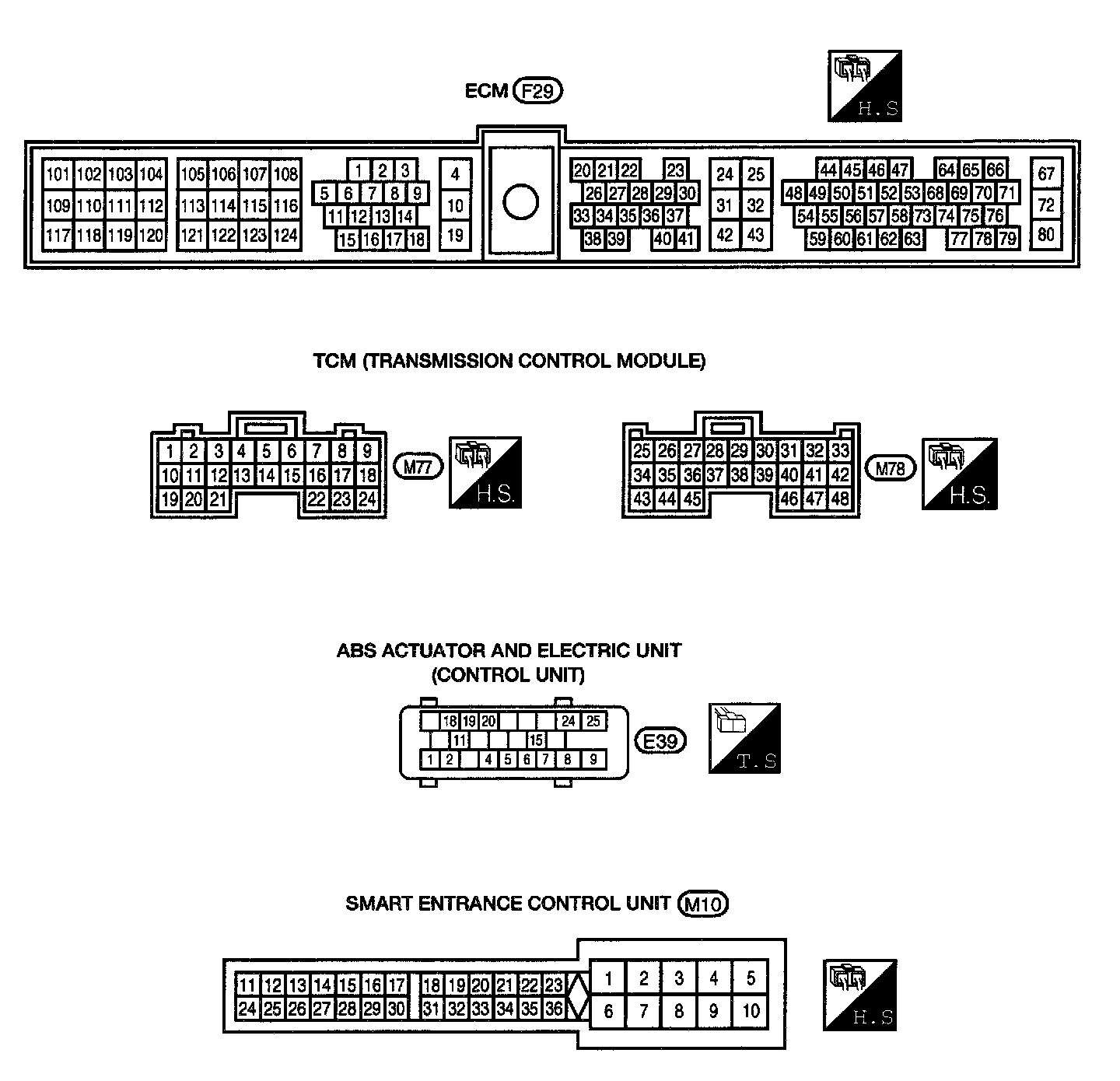 E39, F29, M10, M77, M78 Electrical Units Terminal Arrangement