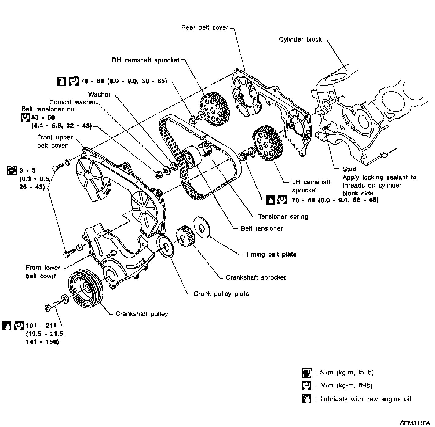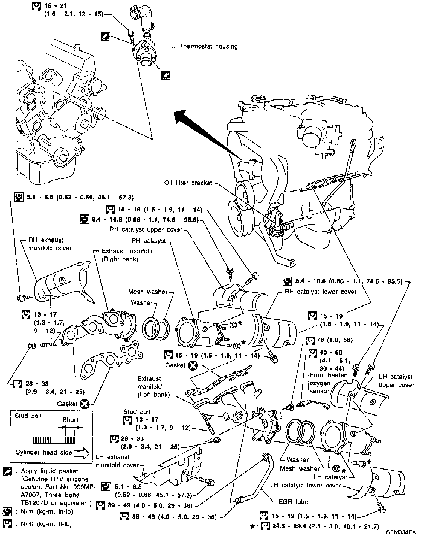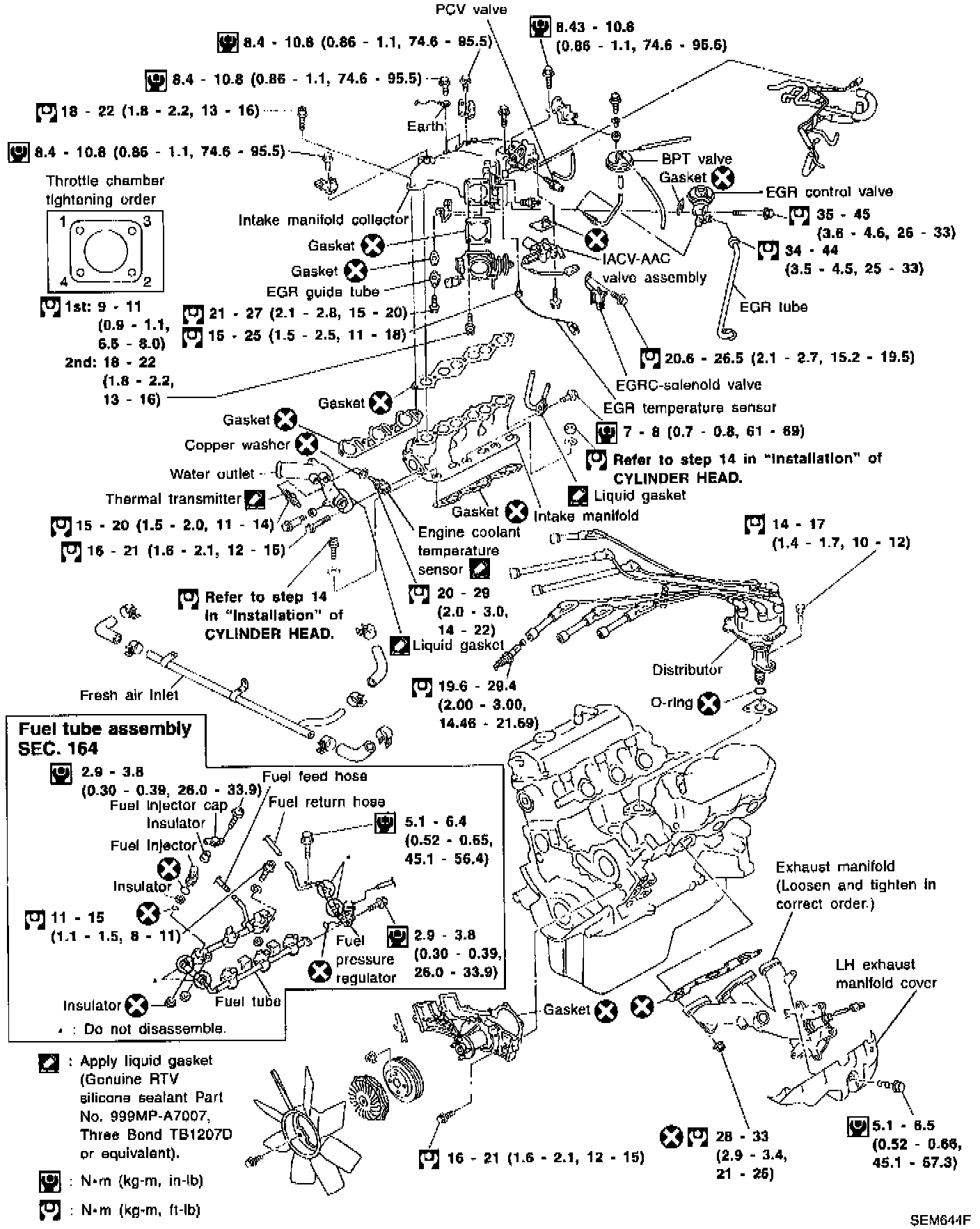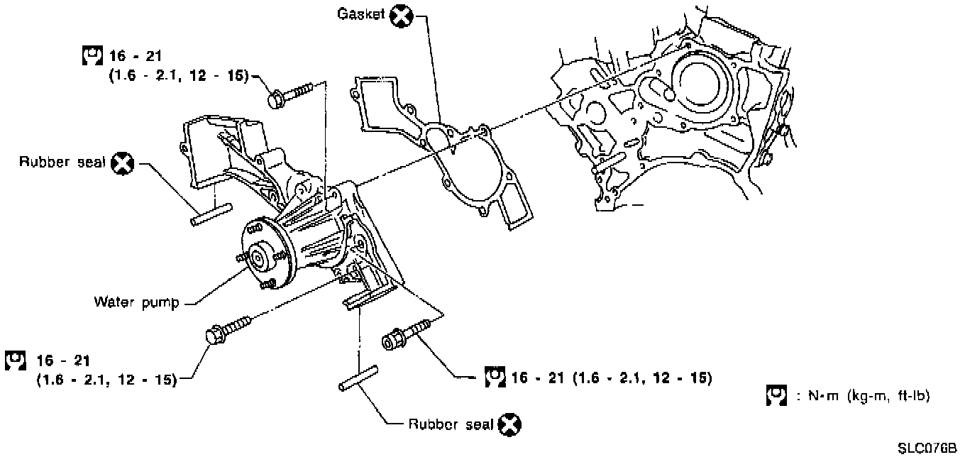 1. Tighten to 14 to 16 Nm (1.4 to 1.6 kg-m, 10 to 12 ft. lbs.)
