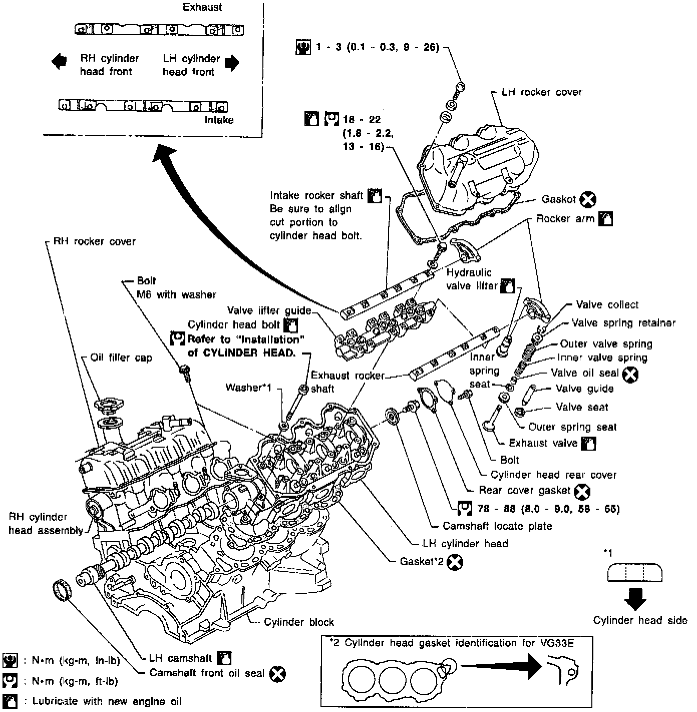 1. Tighten cylinder head bolts to 29 Nm (3.0 kg-m, 22 ft. lbs.).