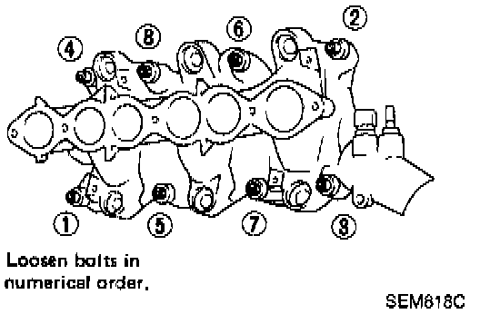 8. Loosen intake manifold bolts and nuts completely.