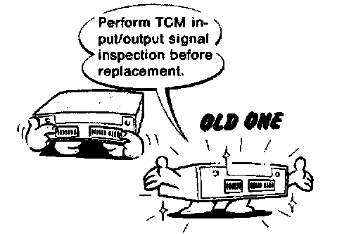 ^ Before replacing TCM, perform TCM input/output signal inspection and make sure whether TCM functions properly or not.