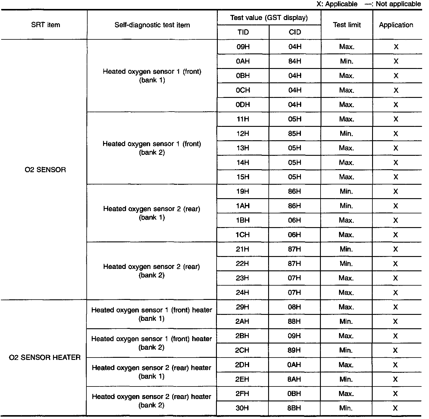 The test value is a parameter used to determine whether a system/circuit diagnostic test is "OK" or "NG" while being monitored by the ECM during self-diagnosis. The test limit is a reference value which is specified as the maximum or minimum value and is compared with the test value being monitored.